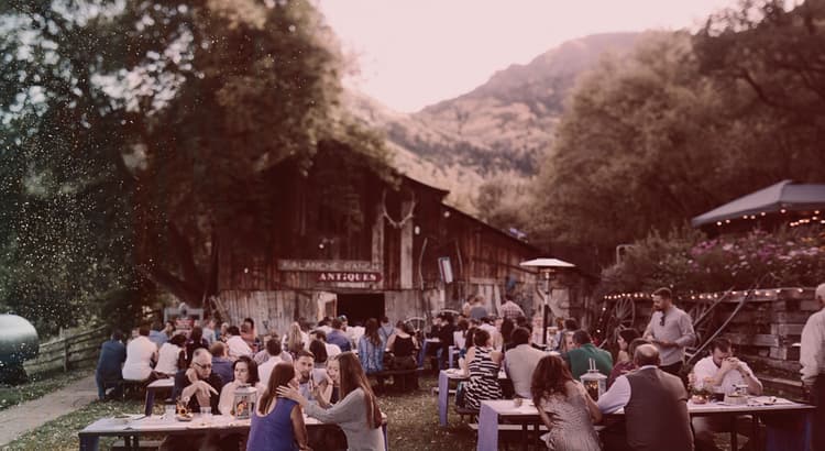 Dine beside the Frying Pan River in Basalt. Open for lunch and dinner.